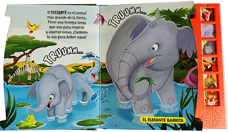 Ficha técnica: 12 páginas de cartón, de 20 x 19 cm. Tapa cartoné con teclas sonoras. Incluye baterías.