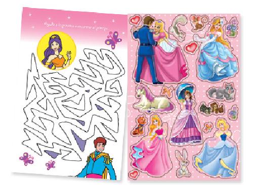 Ficha técnica: 48 páginas de 14 x 21 cm. Tapa de cartulina con glitter (Princesas) y foil dorado (Animales). Incluyen dos planchas de stickers.
