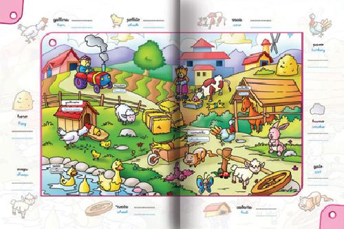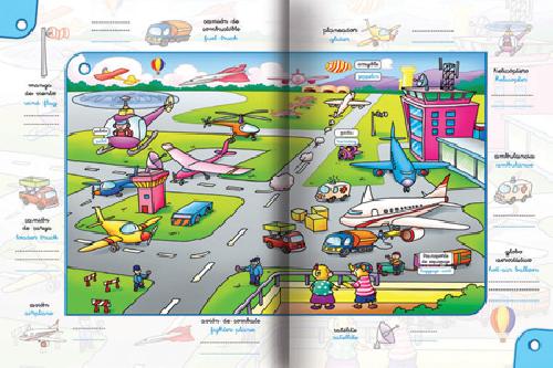 Textos bilingües y láminas coloridas, para aprender jugando.
