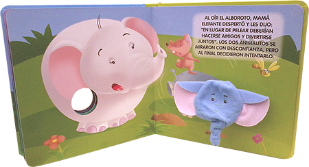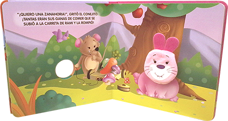 Ficha técnica: 8 páginas de cartón, de 16 x 16 cm. Tapa de cartón con títere de dedo.