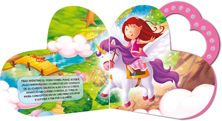 Ficha técnica: 8 páginas de cartón troquelado, de 18 x 18 cm. Tapa de cartón troquelado con glitter.
