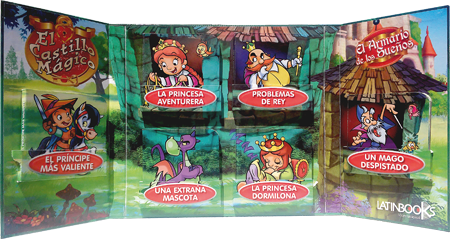 En el castillo del rey Dilwin están sucediendo cosas muy extrañas y nadie sabe por qué. La Princesa Julia se queda dormida en todos lados y su mascota se comporta de forma extraña. La princesa Ana desaparece a cada rato de su habitación, sin dejar rastro, y en los aposentos del mago Olaf se ven extrañas luces seguidas de ruidosos estruendos. Tal vez la llegada del valiente Príncipe Baldon puede develar los misterios. ¡Abre el armario de los Sueños y descúbrelos!Ficha técnica: 6 libros con 10 páginas de cartón de 9 x 9 cm y tapa de cartón, cada uno. Presentados en caja contenedora de cartón con glitter.