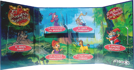 El Árbol Sabio del Bosque Encantado está muy preocupado. El manantial mágico ha perdido su brillo y de pronto la magia del bosque ha comenzado a desaparecer. El Hada Anilda se propone resolver el misterio con la ayuda de la poderosa Hechicera del Bosque. Tal vez si logra encontrar al mítico Unicornio Dorado logre devolver la magia al Bosque. Pero lo que Anilda no sabe es que la ayuda más importante puede venir del lugar menos esperado… ¡Abre el Armario de los Sueños y descúbrelo!Ficha técnica: 6 libros con 10 páginas de cartón de 9 x 9 cm y tapa de cartón, cada uno. Presentados en caja contenedora de cartón con glitter.