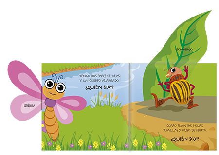Descubre los pequeños animales que se esconden en cada página y responde sus adivinanzas. Solo debes desplegar las solapas y obtendrás la respuesta.