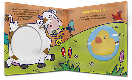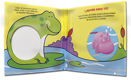 Ficha técnica: 6 páginas de PVC, de 18,5 x 18 cm. Tapa de PVC. Incluye juguete para el baño con chifle.