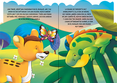Ficha técnica: 10 páginas de cartón troqueladas, de 21,5 x 30 cm. Tapa de cartón troquelado con relieve y spot UV.