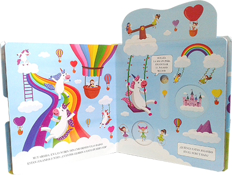 Ficha técnica: 10 páginas de cartón troquelado de 24 x 25,5 cm, con solapas, lengüetas extraíbles, ranuras desplazables, ruedas giratorias y foil. Tapa cartoné con foil.