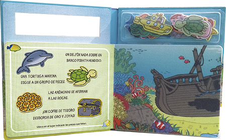 Completa las escenas bajo el mar y en la granja siguiendo las indicaciones de los textos, con las suaves piezas de felpa.