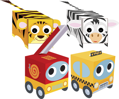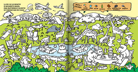 Enfócate y observa cada página en detalle para encontrar los objetos escondidos. Luego colorea las escenas con tus colores preferidos. Al final, podrás armar dos fantásticos animales o vehículos para jugar.