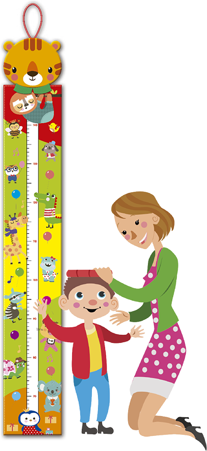 Un libro desplegable con una divertida historia de un lado y un medidor de altura del otro.