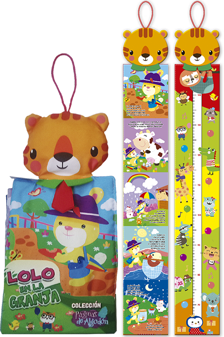 Ficha técnica: Cuento: 5 páginas de tela de 17,5 x 16 cm unidas en banner. Medidor: 1 página de tela de 105 x 16 cm. Bolsa plástica contenedora. Incluye lolsa plástica contenedora y display. con chifle, solapas y cinta para colgarlo.