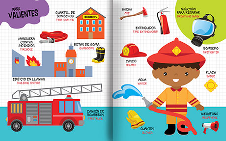 "Excelentes libros, tenemos dos (trabajos y profesiones y el de los animales) mi bebé de dos años aprendió fácilmente todo el vocabulario, le fascinan."