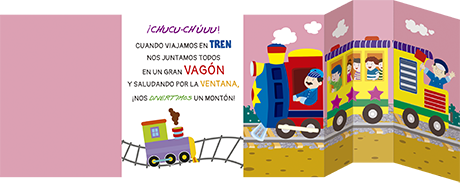 Ficha técnica: 10 páginas de cartulina laminada brillante de 20 x 20 cm. Tapa cartoné acolchada, con spot uv y 5to color. Páginas desplegables.