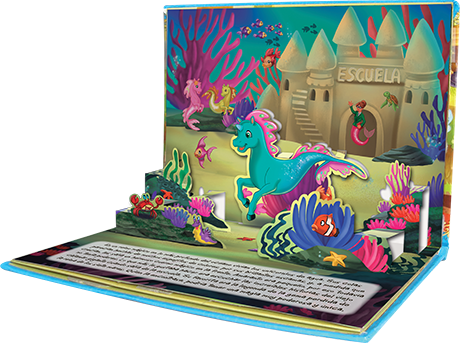 Ficha técnica: 8 páginas de cartón con pop-up, de 25 x 18 cm. Tapa de cartoné acolchada y glitter.
