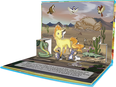 En el agua, en el bosque encantado, zurcando los cielos y entre volcanes ardientes, los unicornios vivirán grandes aventuras, llenas de personajes maravillosos y situaciones sorprendentes. Acompáñalos y sumérgete en la historia con los increíbles pop-up 3D.