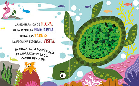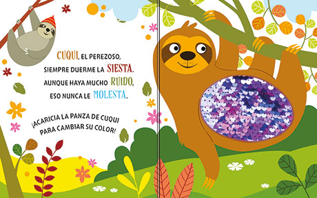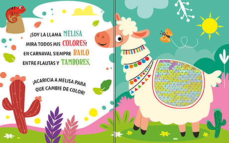 Ficha técnica: 10 páginas de cartón troqueladas con lentejuelas metalizadas, de 15,5 x 19,5 cm. Tapa cartoné troquelada con lentejuelas metalizadas.
