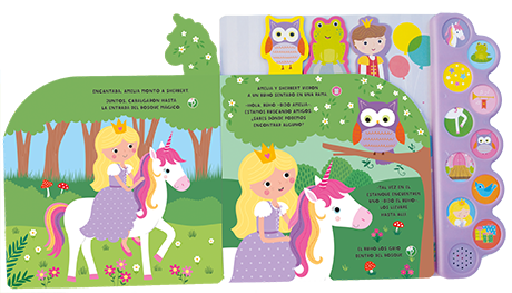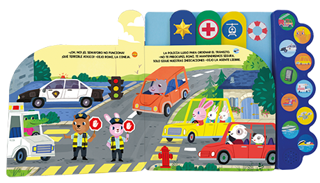 Ficha técnica: 10 páginas de cartón troqueladas, de 21,5 x 27 cm. Tapa de cartón con teclas sonoras. Incluye baterías.