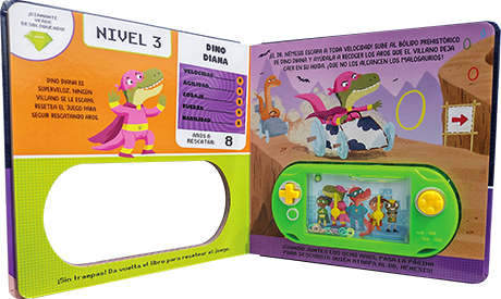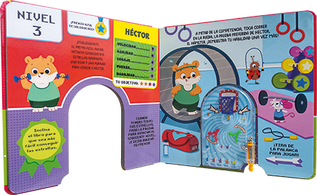 Ficha técnica: 10 páginas de cartón de 20 x 20 cm. Tapa cartoné troquelada. Incluye juego interactivo de plástico.