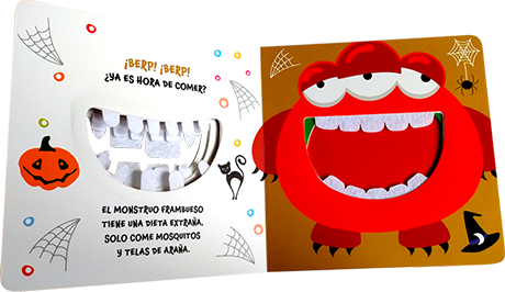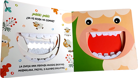 Conoce qué les gusta comer a cada animalito y monstruo, mientras te diviertes acariciando sus dientes de felpa.