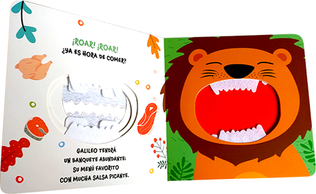 Ficha técnica: 10 páginas de cartón de 23 x 23 cm. Troquelado con texturas. Puntas redondeadas.