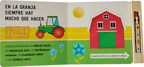 Ficha técnica: 10 páginas de cartón de 21 x 18 cm. Tapa de cartón. Incluye juego interactivo de madera.