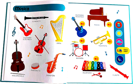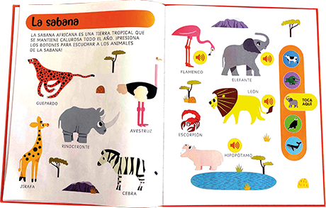 Ficha técnica: 23 páginas de 22,5 x 28 cm. Tapa cartoné laminada mate troquelada. Contiene módulo sonoro. Páginas con 50 botones sonoros.