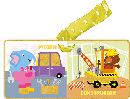 Ficha técnica: 8 páginas de cartulina troqueladas montadas sobre felpa de 11 x 11 cm. Tapa de cartulina troquelada montada sobre felpa. Con cinta de tela y abrojos para colgar.