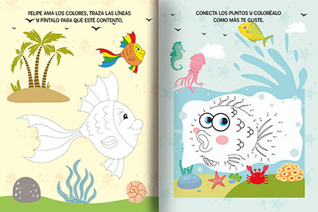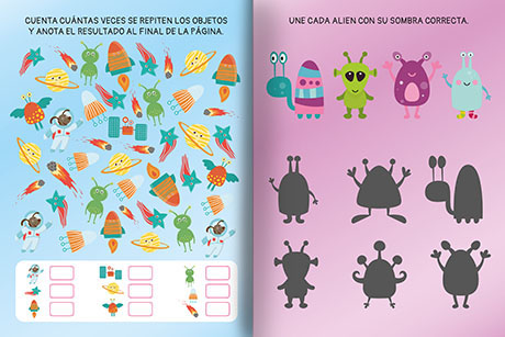 Ficha técnica: 16 páginas de 21 x 28 cm. Tapa de cartulina troquelada. Abrochado. Incluyen: 1000 gemas brillantes o figuras plásticas que brillan en la noche o puffy stickers o Stickers de goma eva o Stickers de gelatina.