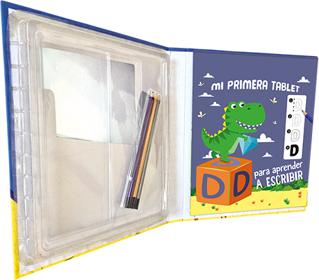 Ficha técnica: 16 láminas de 23,7 x 28,5 cm. Caja contenedora desplegable troquelada. Incluye 4 lápices y una tablet LCD